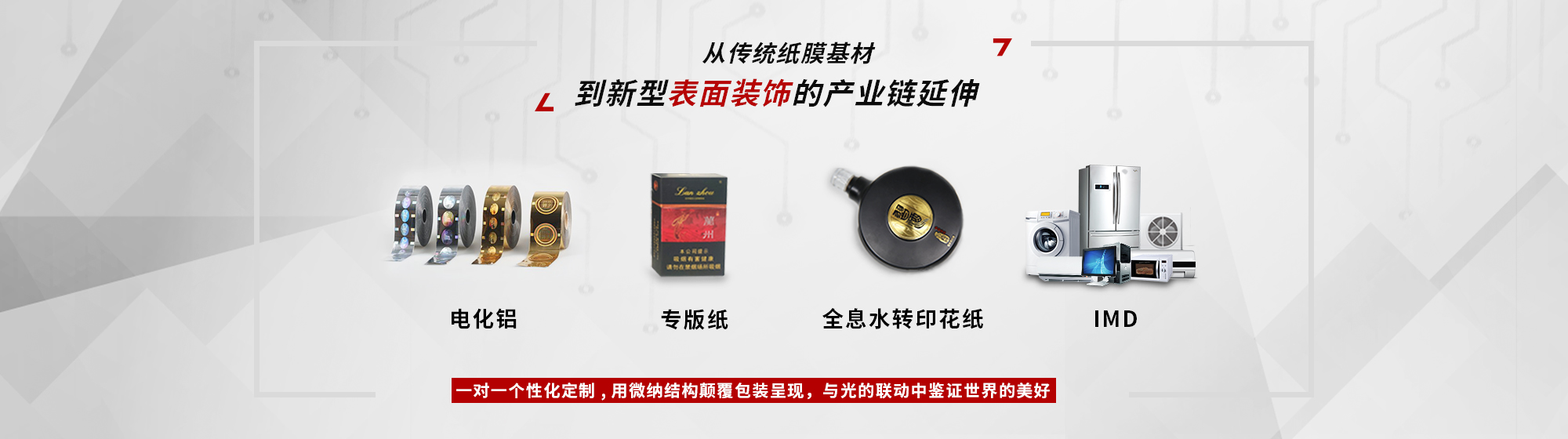全息水轉印是激光全息與花紙的完美結合。全息水轉印花紙可轉印在不規則的玻璃或陶瓷制品(如酒瓶、化妝品瓶)等表面上。華工圖像開發的全息水轉印花紙,成功將全息技術與水轉印技術結合,實現了低溫全息花紙的產業化,能夠提升包裝辨識度和品牌價值,防止假冒偽劣。